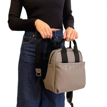 Nueva Mochila Mediana Rubber con doble asa de mano, bolsillo frontal y en su compartimento principal.